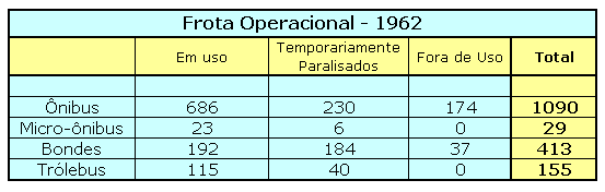 O quadro abaixo mostra a situação da frota de acordo as informações de um relatório da CMTC de 1962.