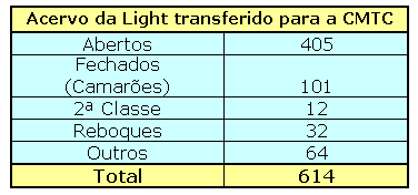 Frota transferida em 1947 (Fonte: “História dos Transportes Coletivos em São Paulo” – Abril/1978 – Waldemar Correa Stiel).Os Bondes nas mãos da CMTC: