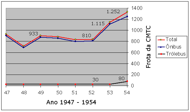 Frota da CMTC 1947 - 1954 (Fonte: “História dos Transportes Coletivos em São Paulo” – Abril/1978 – Waldemar Correa Stiel).