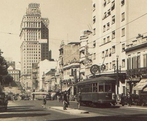 Bonde da Light trafega na Av. São João, em direção ao Anhangabaú.