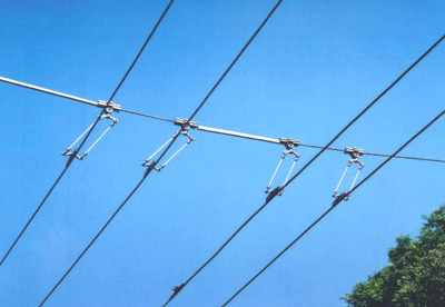 Suspensão flexível em linha reta e em curva.A sustentação dos fios de contato no Sistema Flexível proporciona maior velocidade aos trólebus e menor desgaste da rede graças aos suportes pendulares que permitem a movimentação dos fios de contato, mesmo nos pontos de fixação.