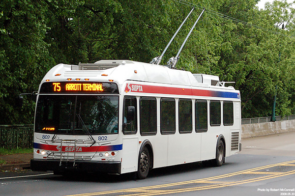 FiladélfiaSÃO FRANCISCO - 145 Novos trólebus adquiridos em 2003 e previsão de extensões de 7 linhas e conversões de outras 10 linhas para trólebus nos próximos 10 anos com a aquisição de novos veículos articulados. Nesta cidade a existência do emaranhado de fios nas ruas não incomodam os cidadãos pois elês têm consciência que o transporte elétrico é o mais limpo em termos ambientais.
