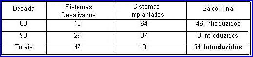 Em um balanço das duas últimas décadas do século passado veremos que entre desativações e introduções de sistemas o resultado foi positivo.