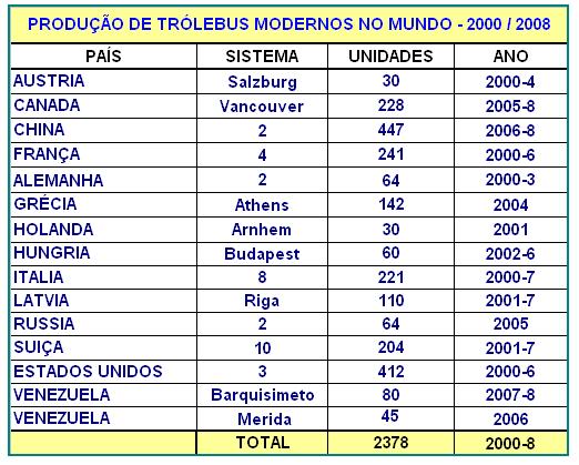 ESTADOS UNIDOSBOSTON - 72 Novos trólebus com piso rebaixados e com dupla tração em 2004.DAYTON - 30 Novos trólebus em 2003.PHILADÉLFIA - Adquiriu 60 trólebus em 2007-2008.